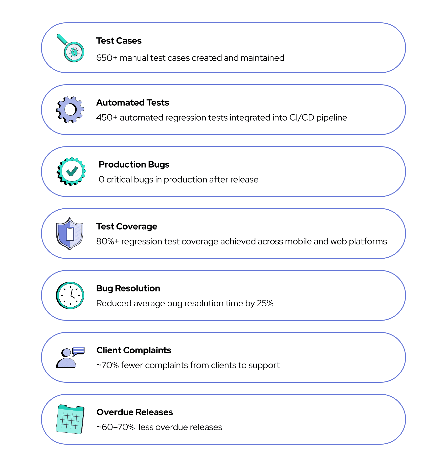~80% drop in user-reported issues, critical checkout errors reduced to near zero, predictable, on-time releases for all major updates.FULL CASE STUDY